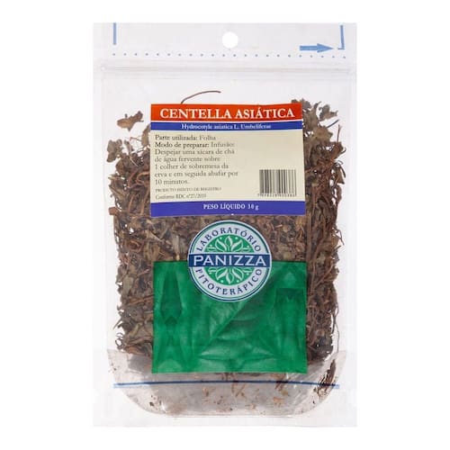 Chá de Centella Asiática 30g Panizza Chá de Centella Asiática 30g Panizza Descubra os benefícios do Chá de Centella Asiática 30g Panizza, um aliado natural para a circulação, bem-estar e cuidados com a pele.O Chá de Centella Asiática Panizza de 30g é uma escolha excelente para quem busca os benefícios de uma planta milenar. Originária de regiões úmidas e sombreadas, como o leste europeu e países da América do Sul Brasil e Venezuela , a Centella Asiática é reconhecida por suas propriedades terapêuticas. Utilizando principalmente as folhas, este chá atua como um poderoso normalizador da circulação, sendo um e natural. É amplamente procurado por seu efeito anticelulítico, prevenção de rugas, e por ser um e diurético. A Panizza garante a qualidade e eficácia de seus produtos, contribuindo para o equilíbrio e bem-estar geral. Diferenciais: Ação multifuncional: Atua como normalizador da circulação, e , promovendo uma sensação de leveza e bem-estar.Cuidado com a pele: Reconhecido por suas propriedades anticelulíticas, preventivas de rugas e por estimular a produção de colágeno, contribuindo para uma pele mais saudável.Equilíbrio holístico: Considerada uma planta tridoshica, a Centella Asiática ajuda a equilibrar os três doshas Vata, Pitta e Kapha , alinhando-se aos princípios da saúde integrativa.Qualidade Panizza: Desenvolvido pelo Laboratório Panizza, sinônimo de confiança e eficácia em produtos naturais para a saúde.Produto livre de glúten, adequado para diversas dietas e estilos de vida. Mais sobre o Produto: Além dos benefícios estéticos e circulatórios, o Chá de Centella Asiática é um coadjuvante no tratamento de condições como dermatoses, reumatismo, rachaduras da pele, varizes, psoríase e pernas pesadas e doloridas. Suas folhas selecionadas são a base para um chá com sabor amargo e uma leve nota adocicada, com potência refrescante e efeito pós-digestivo doce.A versatilidade da Centella Asiática permite não apenas o consumo como chá, mas também a utilização das ervas secas para medicar óleos, ampliando suas possibilidades de uso e aproveitamento de suas propriedades. Dicas de Uso: Para preparar o Chá de Centella Asiática, utilize a quantidade recomendada de folhas secas em água quente. Deixe em infusão por alguns minutos, coe e consuma. Pode ser tomado diariamente para aproveitar seus benefícios.Para outras aplicações, como a medicação de óleos, siga as orientações de um de saúde qualificado para garantir o uso adequado e seguro.Importante: Recomenda-se sempre consultar um de saúde antes de iniciar o uso regular, especialmente em casos de gravidez, lactação ou condições médicas preexistentes.Manter o produto em local fresco, seco e ao abrigo da luz para preservar suas propriedades.