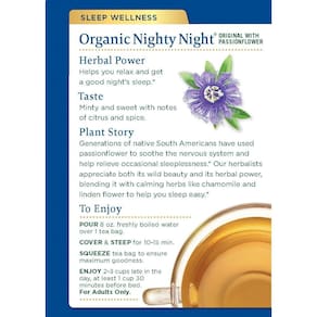 Potência herbal: ajuda você a relaxar e ter uma boa noite de sono. Sabor: Menta e doce com notas cítricas e especiarias. História da planta: Gerações de nativos sul-americanos usaram maracujá para acalmar o sistema nervoso e ajudar a aliviar insônia ocasional. Nossos fitoterapeutas apreciam sua beleza selvagem e seu poder herbal, misturando-os com ervas calmantes como camomila e flor de tília para ajudá-lo a dormir facilmente.