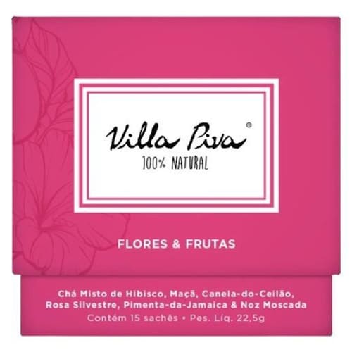 Chá misto flores e frutas villa piva 15 sachês Feito de ingredientes 100% naturais, o chá misto flores e frutas villa piva é composto por um blend de hibisco, maçã, canela do ceilão, ros silvestre, pimenta da jamaica e noz moscada. Ingredientes: hibisco, maçã, canela do ceilão, ros silvestre, pimenta da jamaica e noz moscada. Não contém glúten. Sobre a marca: villa piva é uma marca que estimula e promove uma rotina saudável de alimentação, prezando pela garantia de ingredientes de origem, processos transparentes de produção e linhas de produto criativas, desenvolvidas com intuito de promover uma melhor qualidade de vida aos seus consumidores. Além do frescor e sabor das frutas do vale dos vinhedos, um terroir internacionalmente reconhecido, nossos sucos, chás e água de coco trazem diversos benefícios à saúde, proporcionando alto poder antioxidante ao organismo. Experimente