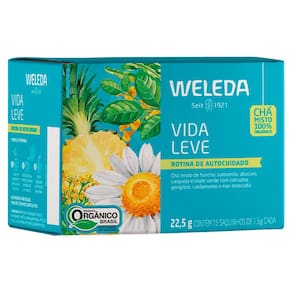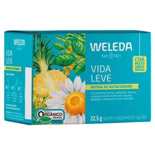 Chá Weleda Vida Leve Chá Misto Vida Leve 100% Orgânico Weleda Rotina de Autocuidado de Funcho, Camomila, Abacaxi, Carqueja e Mate Verde com Cúrcuma, Gengibre, Cardamomo e Noz-Moscada. Modo de preparo: