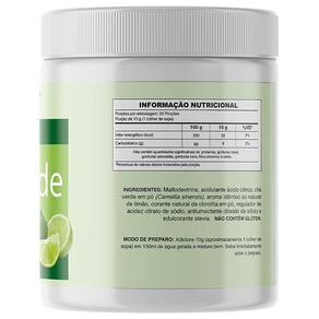 INGREDIENTES: Maltodextrina, chá verde em pó (Camellia sinensis), acidulante ácido cítrico, regulador de acidez: citrato de sódio, clorofila em pó, edulcorante stévia, antiumectante dióxido de silício e aroma idêntico ao natural de limão. NÃO CONTÉM GLÚTEN