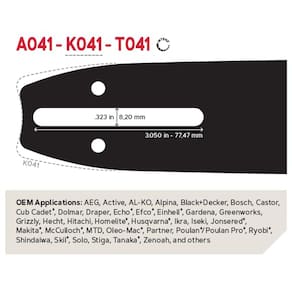 - Atualize sua motosserra com a combinação premium de barra e corrente do Oregon. Certifique-se de que sua serra use uma barra de 40,6 cm com corrente de serra de calibre 1,27 cm com 56 elos de acionamento e suporte de motor A041