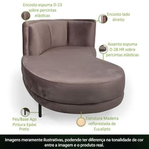 Características do Produto: Material da Estrutura: Madeira reflorestada de eucalipto, com partes em MDF e OSB. Material do Assento: Espuma D-28 HR sobre percintas elásticas. Material do Encosto: Espuma D-23 sobre percintas elásticas. Braço: Espuma D-23. Material dos Pés/Base: Aço com pintura Epóxi metalizado. Tipo de pés: Fixo Cor dos Pés/Base: Preto. Quantidade de Pés: 04 Encosto: Fixo Assento: Fixo Revestimento: Veludo Peso Suportado: Até 120 Kg. Destaques: - Design clássico e contemporâneo. - Base de Aço reforçado que garante maior durabilidade. Observação: Encosto Lado Direito Quantidade de Volumes: 02 Necessita de Montagem: Sim, somente fixação da base, acompanha kit de montagem. Garantia: 03 Meses contra de fabricação Instruções/Cuidado: Utilizar um pano levemente umedecido com água limpa, seguido de pano seco. Evitar exposição ao sol, para que o produto não sofra alterações na cor do tecido. Nunca sentar nos braços ou encosto do produto. Observações Importantes: - Todas as imagens são meramente ilustrativas, podendo haver diferença na tonalidade de cor entre a imagem e o produto real, devido ao tratamento de imagens e a configuração de cores de sua tela; - Objetos de decoração e eletros não acompanham o produto; - Todos os nossos produtos são enviados devidamente embalados e com total , diminuindo riscos de danos em ; - No momento da o cliente deve verificar as condições da embalagem, havendo peças danificadas deve ser informado no de ; - Nos responsabilizamos pela dos produtos adquiridos até a porta de entrada ou portaria do indicado; - Confira as dimensões nas descrições do produto e certifique-se de que o percurso e de instalação permitem sua passagem e acomodação; - Não nos responsabilizamos, no ato da , por montagens, desmontagens e instalações de produtos, bem como, por subir ou descer escadas/elevadores ou pela utilização de guinchos ou equipamentos similares para acesso a pisos superiores em apartamentos, casas ou escritórios. Marca: Não Informado