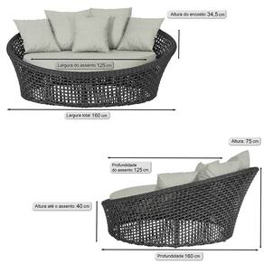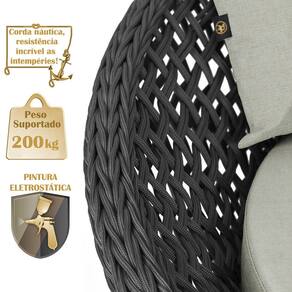 A trama artesanal em corda náutica adiciona um toque moderno e elegante, além de proporcionar flexibilidade e conforto inigualáveis. Para completar, o estofado em tecido impermeável assegura praticidade e bem-estar em qualquer ambiente, seja na área externa ou interna.