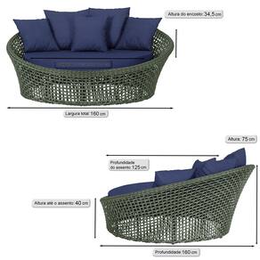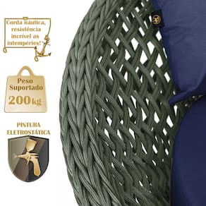 A trama artesanal em corda náutica adiciona um toque moderno e elegante, além de proporcionar flexibilidade e conforto inigualáveis. Para completar, o estofado em tecido impermeável assegura praticidade e bem-estar em qualquer ambiente, seja na área externa ou interna.