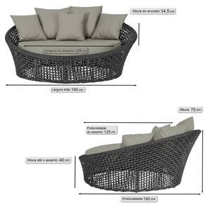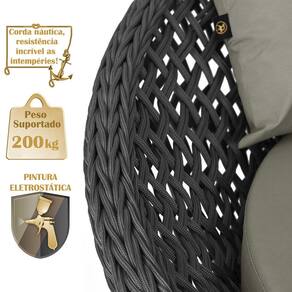A trama artesanal em corda náutica adiciona um toque moderno e elegante, além de proporcionar flexibilidade e conforto inigualáveis. Para completar, o estofado em tecido impermeável assegura praticidade e bem-estar em qualquer ambiente, seja na área externa ou interna.