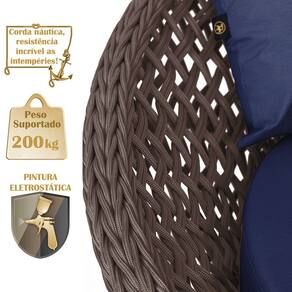 A trama artesanal em corda náutica adiciona um toque moderno e elegante, além de proporcionar flexibilidade e conforto inigualáveis. Para completar, o estofado em tecido impermeável assegura praticidade e bem-estar em qualquer ambiente, seja na área externa ou interna.