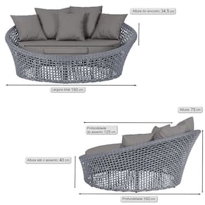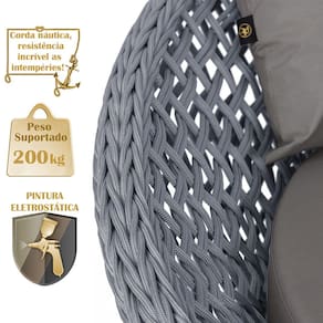 A trama artesanal em corda náutica adiciona um toque moderno e elegante, além de proporcionar flexibilidade e conforto inigualáveis. Para completar, o estofado em tecido impermeável assegura praticidade e bem-estar em qualquer ambiente, seja na área externa ou interna.