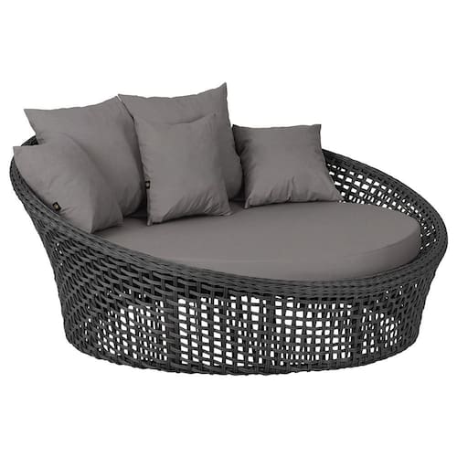 A trama artesanal em corda náutica adiciona um toque moderno e elegante, além de proporcionar flexibilidade e conforto inigualáveis. Para completar, o estofado em tecido impermeável assegura praticidade e bem-estar em qualquer ambiente, seja na área externa ou interna.