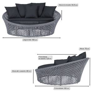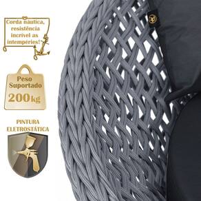 A trama artesanal em corda náutica adiciona um toque moderno e elegante, além de proporcionar flexibilidade e conforto inigualáveis. Para completar, o estofado em tecido impermeável assegura praticidade e bem-estar em qualquer ambiente, seja na área externa ou interna.