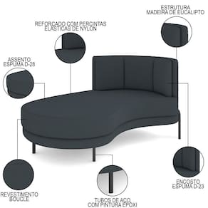 Relaxe em grande estilo com o Chaise Longue Divã 164cm Braço Direito Logus D06 Bouclê Chumbo, da Mpozenato.