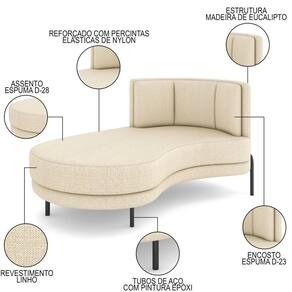Relaxe em grande estilo com o Chaise Longue Divã 164cm Braço Direito Logus D06 Linho Creme, da Mpozenato.