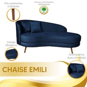 A Chaise Diva Emili é uma peça de mobiliário elegante e sofisticada, com design moderno e contemporâneo. Com estrutura robusta, estofamento luxuoso e formato curvilíneo, oferece conforto e estilo.
