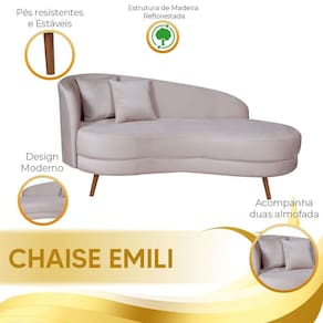 A Chaise Diva Emili é uma peça de mobiliário elegante e sofisticada, com design moderno e contemporâneo. Com estrutura robusta, estofamento luxuoso e formato curvilíneo, oferece conforto e estilo.