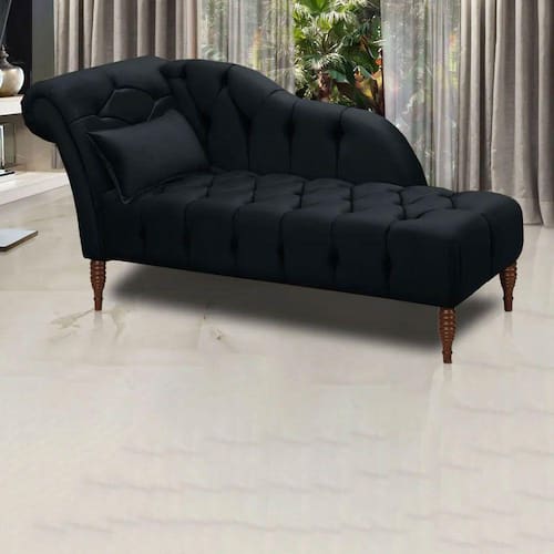 Chaise Longue Divã Montreal em Madeira de Reflorestamento Veludo 160cm Star Confort - Preto