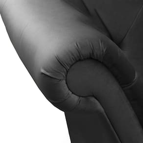 Ele possui estofamento e costura em capitonê e pés de madeira clássicos. Além de ser confortável, tornando-o perfeito para leitura, atendimento a clientes ou momentos de lazer.