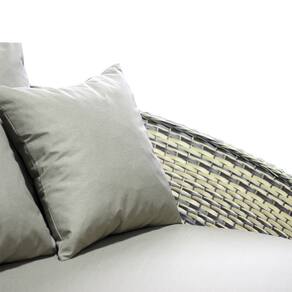 A estrutura de alumínio pode ser molhada e utilizada em áreas abertas, exposta ao sol e chuva. O estofado, por mais que seja o impermeável da Karsten, é resistente à água (se cair um copo de água por exemplo, não haverá problema), mas não pode ficar totalmente exposto a chuva.