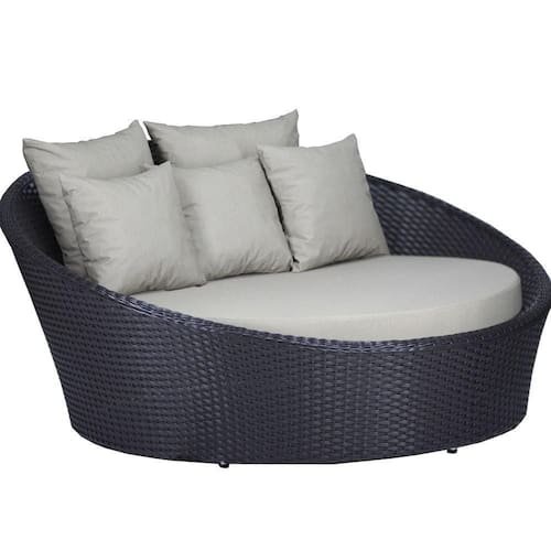 A estrutura de aluminio pode ser molhada e utilizada em areas abertas, exposta ao sol e chuva. O estofado, por mais que seja o impermeavel da Karsten, e resistente a agua (se cair um copo de agua por exemplo, nao havera ), mas nao pode ficar totalmente exposto a chuva.