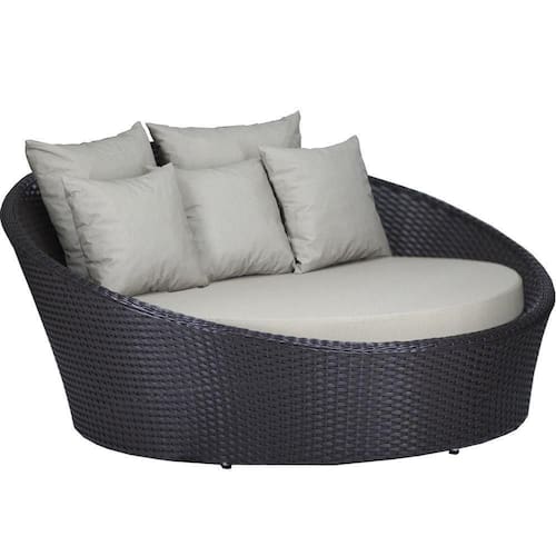 A estrutura de aluminio pode ser molhada e utilizada em areas abertas, exposta ao sol e chuva. O estofado, por mais que seja o impermeavel da Karsten, e resistente a agua (se cair um copo de agua por exemplo, nao havera ), mas nao pode ficar totalmente exposto a chuva.