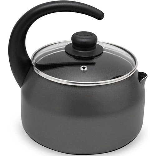 A Chaleira em Alumínio com Tampa de Vidro da linha Gourmet da Multiflon possui capacidade para 2,4 litros. Esta chaleira de alumínio possui revestimento Ultra 6 que dispõe o selo PFOA FREE, e garante a ausência de elementos nocivos à saúde em sua composição. A chaleira antiaderente é de fácil limpeza e seu material de alumínio torna ela ainda mais leve, facilitando assim seu manuseio. A alça e pegador da chaleira de alumínio Multiflon são ergonômicos, permitindo o manuseio com mais conforto e segurança.