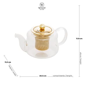 Chaleira 600 ml Vidro Borossilicato e Infusor Dourado Inox - Wolff
