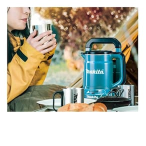 A Chaleira KT001GZ é o companheiro perfeito para suas aventuras ao ar livre. Com sua estrutura interna em aço inoxidável, oferece alta retenção de calor, mantendo a superfície da chaleira fria ao toque. Equipada com um bloqueio anti-derramamento, proteção contra fervura seca e desligamento automático após a fervura, garante segurança e praticidade durante o uso. Além disso, emite um sinal sonoro de aviso após a ebulição, para que você nunca perca o momento certo. Com capacidade para 800 ml, esta chaleira possui potência de 40Vmax e é compatível com a tecnologia XGT, proporcionando desempenho confiável em qualquer situação.