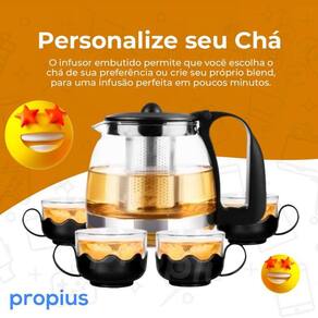 Chaleira Bule Com Infusor 1L e 4 Xícaras Em Vidro Inox Cozinha Jarra Esquentar Fogão Água Coador Transparente Alça imagine-se saboreando um chá fresco e delicioso, preparado à perfeição na sua própria casa, servido em elegantes xícaras de vidro. Apresentamos o Conjunto de Chaleira Bule com Infusor de 1L e 4 Xícaras em Vidro - uma experiência de chá que eleva os sentidos. Este conjunto é um verdadeiro tesouro para os amantes do chá. A chaleira, feita com materiais de alta qualidade, vidro, plástico e inox, possui um design moderno e sofisticado. O infusor embutido é uma maravilha de conveniência, permitindo que você escolha o chá de sua preferência ou crie seu próprio blend, adicionando a água fervente para uma infusão perfeita em poucos minutos. As xícaras que acompanham o conjunto são elegantes, combinando perfeitamente com a chaleira. Com capacidade para 150ml, elas são perfeitas para uma pausa para o chá à tarde ou para compartilhar uma experiência de chá com os amigos. Prático para lavar, a chaleira e as xícaras são fáceis de limpar. Basta retirar o infusor e descartar os resíduos do chá. Toda a beleza e funcionalidade deste conjunto está nas suas mãos com um peso confortável de 230g para a chaleira e 96g para cada xícara. Este Conjunto de Chaleira com Infusor e 4 Xícaras em Vidro é mais que um simples acessório de cozinha, é uma experiência de chá elevada. Ao adquirir este conjunto, você está investindo em momentos de tranquilidade, prazer e bem-estar. Não perca tempo, adquira já o seu conjunto e transforme cada xícara de chá em um momento de prazer único e inigualável. A vida é curta demais para beber chá de qualidade inferior. Invista em você, invista em seus momentos, invista no Conjunto de Chaleira Bule com Infusor de 1L e 4 Xícaras em Vidro.