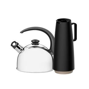 Muito importante:-- conferir produtos no ato do recebimento. Não aceitar produtos com embalagem violada amassado, rasgado, aberto, quebrado, etc , a recusa deve ser feita no ato.Componentes do kit:1 - chaleira em aço inox com apito capacidade 2,1 lts - tramontina 614830131 - bule garrafa térmica exata em plástico com ampola de vidro 1 l preto - tramontina 61636103chaleira em aço inox com apito 2,1l e bule garrafa térmica 1l preto tramontinaaprimore suas experiências na hora do chá ou café com a chaleira em aço inox com apito 2,1l e o elegante bule garrafa térmica 1l preto tramontina. Fabricada em aço inoxidável de alta qualidade, a chaleira oferece durabilidade e sofisticação à sua cozinha, enquanto seu apito integrado indica quando a água está pronta. O bule garrafa térmica tramontina mantém suas bebidas quentes por horas, garantindo momentos de conforto a qualquer hora do dia. Combinando funcionalidade excepcional com design moderno e elegante, este conjunto tramontina é essencial para sua rotina diária. Desfrute da qualidade e estilo superiores deste conjunto para tornar cada pausa mais agradável e especial.Informações técnicas:chaleira: - feita de aço inox, por isso não solta nenhum resíduo nos alimentos, mantendo-os saudáveis.- acabamento em alto brilho, valorizando o produto.- para uso doméstico.- com apito, avisa na hora em que a água estiver fervendo; o sistema de apito é acionado por meio do vapor no momento em que a água inicia a fervura na chaleira.- possui cabo de material especial, que não deixa o calor passar.- tampa com encaixe especial, que não deixa vazar e cair na hora de servir.- pode ser utilizada nos fogões: gás, elétrico e vitrocerâmico.Bule: - a capacidade volumétrica poderá ter uma variação de até 10% em seu volume nominal indicado.- com linhas atemporais e design clean, o bule térmico da linha exata combina com qualquer estilo e ambiente.- ideal para manter líquidos quentes ou frios na temperatura adequada por muito mais tempo.- uso intuitivo com abertura estilo rolha.- canal que direciona o fluxo da bebida, evitando respingos.- sistema corta-pingos embutido.- cabo confortável com toque suave e muito seguro.- robusto, simples e moderno, ocupa menos espaço na sua casa e durante o transporte.- praticidade no uso e segurança para toda a família.- leve e fácil de manusear.- seus componentes são bpa free.- higiênico e de fácil limpeza.Dimensões:chaleira: - diâmetro: 19,0 cm.- capacidade: 2,10 lts.- peso líquido: 0,80 kg.- peso bruto: 0,95 kg.- medidas produto: 21,8cm a x 19cm l x 22,8cm cbule: - medidas do produto: 12cm a x 29cm l x 14cm p- peso líquido: 0,5kg- medidas da embalagem: 13cm a x 37cm l x 27cm p- peso bruto: 0,95kg.- como é a limpeza do bule térmicoO bule térmico é higiênico e de fácil limpeza, proporcionando praticidade no uso diário.Chaleira em aço inox, chaleira com apito, chaleira 2.1l, bule garrafa térmica, bule 1l, bule preto, tramontina, utensílios de cozinha, aço inoxidável, design moderno, preparo de bebidas, utensílios domésticos, café, chá, conservação de temperatura, alta qualidade