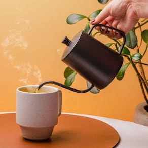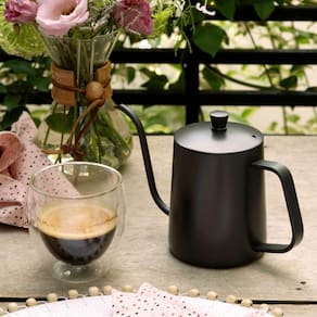 Para os amantes de café, apresentamos uma linha completa de cafeteria. E para cada etapa do preparo do café, um produto especial. A chaleira em aço inox com bico de ganso é o produto ideal para adicionar água ao filtro com maior precisão no ritmo e controle da quantidade de água utilizada através da angulação do bico de ganso. A chaleira deve ser abastecida com água já aquecida para o preparo de chá ou café. Capacidade para 600 ml água.