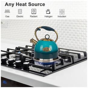 Design de aço inoxidável todo o corpo da chaleira é feito de aço inoxidável, o corpo grosso tornando o mais durável e resistente. Fundo de metal de 5 camadas com alta condutividade térmica para aquecimento mais uniforme e vida útil mais longa. Som de assobio perfeito da chaleira esta chaleira para fogão tem uma tampa apertada que mantém o vapor na chaleira quente para aquecimento rápido e apitos agradáveis quando a água ferve, alto o suficiente para alarmá lo quando você estiver ocupado no próxima sala. Bule de gatilho de uma mão Este bule de chá para fogão com mecanismo de gatilho de uma mão que permite uma operação conveniente com uma mão. Sutable para vários fogões Bule adequado para qualquer fonte de calor, incluindo fogão de indução, fogão elétrico, fogão a gás, fogão radiante. Por favor, use fonte de calor médio e prolongue a vida útil, caso contrário, queimaria a chaleira e descoloriria a superfície do corpo Marca: Não Informado