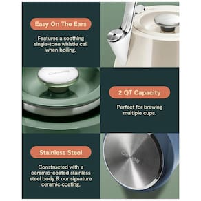 ESSENCIAL DE COZINHA MODERNIZADA Apresentando nossa visão moderna da cozinha clássica essencial, nossa chaleira de chá Whistling é lindamente construída com materiais não tóxicos para manter sua água fervida limpa e livre de produtos químicos nocivos. ALTO DESIGN Esteja você procurando completar sua coleção de alcaravia ou uma nova peça central de fogão, nossa chaleira de aço inoxidável vem em sete cores modernas que elevarão o design de qualquer cozinha. SUPORTE DE PANELA INCLUÍDO Cada chaleira vem com um suporte de panela de cortesia, tornando sua chaleira mais fácil de manusear após a água fervente. O suporte de panela também pode ser como um tripé para manter seu balcão ou mesa protegido do calor. STOVETOP AGNOSTIC Projetado para fervura rápida, cada chaleira de chá de 2 litros é construída com um corpo de aço inoxidável e revestida em cerâmica não tóxica. Pode ser em qualquer tipo de fogão, incluindo indução, gás e elétrico. APROVADO PARA O PLANETA O bule de chá de alcaravia não contém PTFE, PFOA, PFAs, grafite e cádmio. Nossas chaleiras de fogão são projetadas com materiais produzidos de forma ética que não levam a nenhum escoamento tóxico Marca: Não Informado