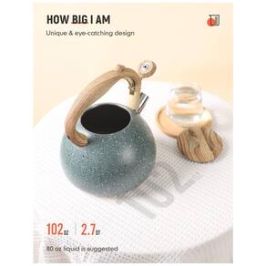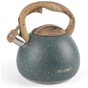 Material de qualidade alimentar e design estrelado A chaleira de assobio BELANKO usa materiais profissionais de qualidade alimentar e artesanato em aço inoxidável 18, 8 para garantir que seja resistente à ferrugem e à corrosão e aqueça rapidamente. Todas as superfícies expostas a partículas de água e alimentos são certificadas como de qualidade alimentar e fáceis de limpar. Além disso, o design da superfície estrelada faz com que pareça as estrelas no céu noturno, o que é elegante e único. Chaleira de chá com assobio alto Assobios altos e automáticos chamam sua atenção mesmo em um ambiente barulhento. Quando você se concentra em seu trabalho doméstico, fitness, música, etc., a chaleira irá lembrá lo com um apito quando a água estiver fervendo. Evita que você esqueça de desligar o fogão e faça com que a água ferva até secar. NOTA Certifique se de que o nível da água está abaixo da saída de água da chaleira para garantir que o apito esteja funcionando corretamente. Capacidade de 102 onças , 3 litros Esta chaleira de aço inoxidável é muito adequada para famílias ou grupos de 5 a 7 pessoas. A capacidade de 3 litros permite atingir uma capacidade de cerca de 12 xícaras após uma única fervura, o que faz com que você não precise ferver água repetidamente com frequência e economize seu tempo. Aproveite seu café da manhã ou hora do chá com alegria. Alça macia e botão de pressão simples A alça isolada revestida de silicone permite que você levante o bule de chá diretamente sem risco de queimaduras. A forma ergonômica e o material de silicone macio aumentam o conforto ao levantar ou despejar água. Além disso, o botão fácil de usar na alça facilita a abertura ou o fechamento do bico, e a peça de metal interna evita que o ar ou a água vaze facilmente