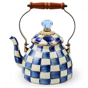 CHALEIRA ROYAL CHECK Esta chaleira quadriculada tem uma parte inferior de aço de calibre pesado vidrada com cheques coloridos pintados à mão em uma variedade de tons de azul. Com uma alça de madeira e uma tampa encimada por um elegante puxador de vidro azul, ela está vestida com esmero Chaleira de chá exclusiva oferecemos nossa linda chaleira em uma variedade de cores e padrões. Esteja você desfrutando de uma xícara de chá casual à tarde ou dando uma festa elegante, você pode tornar cada dia extraordinário com MacKenzie Childs. CONJUNTO DE COZINHA DE ESMALTE Combine sua adorável chaleira para uso no fogão com nossa grande variedade de peças de louça Oferecemos canecas de café combinando, pratos de jantar e salada e muito mais. Desfrute de padrões únicos e visuais impressionantes com MacKenzie Childs. UM PRESENTE PERFEITO A clássica chaleira esmaltada da MacKenzie Childs é muito mais do que um presente é o começo de uma coleção para toda a vida. É um presente incrível de Natal, aniversário, casamento ou inauguração de casa. MACKENZIE CHILDS A MacKenzie Childs nasceu do nosso amor pelo lar e do nosso compromisso com um design e inovador. Cada peça criada por nossos artesãos guarda a surpresa e a alegria do inesperado Marca: Não Informado