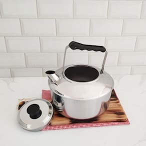 Chaleira de Cozinha Aço Inox 3 litros com Alça Articulável e Tampa Zanella #Alça de baquelite #Item de cozinha #Linha inox Garantia: 90 Dias / Peso: 532g / Cor: inox e preto / Ref: 1185001 Dimensões: 22cm (C) x 21,5cm (L) x 21cm (A) Diâmetro do bocal: 10,5cm; Capacidade: 3 litros; Contém: 1 chaleira com tampa. Cuidados: Não lavar com materiais abrasivos. Não é indicado para fogão de indução. Material: - Aço Inox: Material de grande resistência, não enferruja, não transfere odor e nem gosto; - Baquelite: alça. A chaleira é uma peça, muito versátil na cozinha. Usada para ferver água para inúmeros afazeres como auxiliar na limpeza da louça suja, passar um café ou até mesmo fazer um delicioso chá. A chaleira de inox é de ótima qualidade com alça articulável para facilitar o manuseio do dia a dia e pegador em baquelite para impedir o calor de chegar as mãos. Com capacidade para 3 litros a chaleira de fogão complementará sua cozinha.