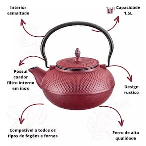 Chaleira de Ferro Fundido MTA 1,5L – Elegância e Durabilidade A Chaleira de Ferro Fundido MTA 1,5L é perfeita para quem busca qualidade e sofisticação na hora de preparar bebidas quentes. Fabricada em ferro fundido de alta resistência, mantém a temperatura por mais tempo, proporcionando um aquecimento uniforme da água. Seu design clássico e robusto combina com qualquer cozinha, garantindo durabilidade e eficiência. ???? Capacidade: 1,5 litros???? Material: Ferro fundido resistente???? Retenção térmica: Mantém a água quente por mais tempo???? Alça reforçada: Maior segurança no manuseio???? Compatível com fogão a gás, elétrico e indução Ideal para preparar chás e cafés com um toque tradicional e sofisticado!