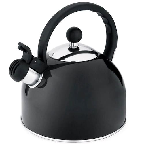 Chaleira de Inox com Apito 1,75L Cabo Fixo Preta Hercules para Cozinha Esquentar Ferver.