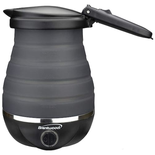 Chaleira elétrica Brentwood KT-1508BK com capacidade de 0.8L, potência de 1200W, corpo dobrável para viagens e elemento de aquecimento oculto.Características