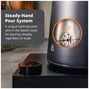 Chaleira elétrica 1L com alça contrabalançada, corpo em aço inoxidável, potência de 1200W, aquecimento rápido e função de manutenção de temperatura.Características