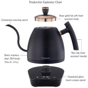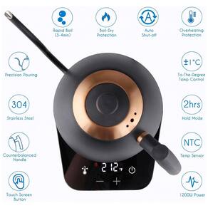 Chaleira elétrica 110V com capacidade de 1,5L, desligamento automático, corpo em aço inoxidável, controle de temperatura e aquecimento rápido.Características
