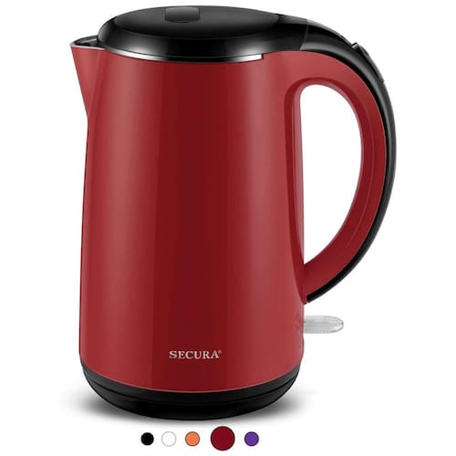 Desfrute de água potável segura e saudável fabricada com um interior 100 de aço inoxidável panela de aço inoxidável, tampa de aço inoxidável, bico de aço inoxidável, aro de aço inoxidável, a chaleira elétrica Secura não tem plástico em contato com água quente. Assim, você pode desfrutar de água quente para um chá perfeitamente ensopado ou para cozinhar. Água quente pronta rapidamente Com a potência de 1500 Watts, a água quente fervente estará pronta rapidamente perfeita para as manhãs movimentadas, quando você quer uma xícara de café ou chá rápida. Métodos de aquecimento mais rápidos e eficientes do que os antiquados para ajudar a economizar dinheiro nas contas de energia. Bico largo e abertura grande. Uma abertura extra grande torna esta chaleira fácil de limpar e reabastecer