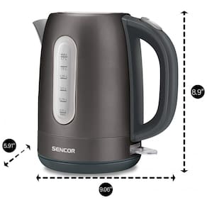 Chaleira elétrica sem fio com capacidade de 1.7L, base de aquecimento em aço inoxidável, filtro de sujeira e calcário removível, proteção contra superaquecimento e desligamento automático.Características