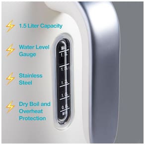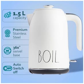 A chaleira elétrica da marca Rae Dunn é uma excelente opção para quem busca praticidade e eficiência na hora de preparar bebidas quentes. Com capacidade para 1.7L, você pode ferver água para preparar chá, café ou qualquer outra bebida em questão de minutos. Com um design moderno e elegante, esta chaleira elétrica possui um sistema de desligamento automático que impede o superaquecimento e garante a segurança do usuário. Além disso, sua proteção de fervura evita que a água transborde, permitindo que você a utilize com tranquilidade. Este equipamento opera em 110V, sendo ideal para uso em residências e escritórios. Com seu corpo em aço inoxidável, é resistente e durável, garantindo um uso prolongado. Além disso, sua alça ergonômica e bico com sistema anti gotejamento tornam o uso ainda mais prático e confortável. Esta chaleira elétrica é fácil de limpar, graças à sua superfície lisa e ao filtro de malha removível. Com sua capacidade generosa e eficiência energética, ela é perfeita para o uso diário e pode ser usada por toda a família. Com a marca Rae Dunn, você pode ter certeza de estar comprando um produto de qualidade e confiança