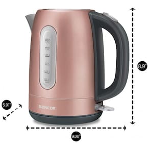 Chaleira elétrica sem fio com base de aquecimento em aço inoxidável, filtro de sujeira e calcário removível, proteção contra superaquecimento e desligamento automático.Características
