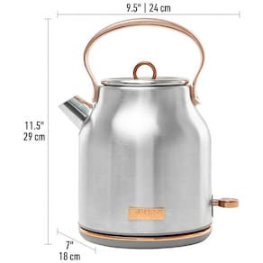 Chaleira elétrica 1.7L em aço inoxidável com desligamento automático e proteção contra fervura, 1500W, 110v, com janela de nível de água e luz indicadora de LED.Características