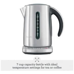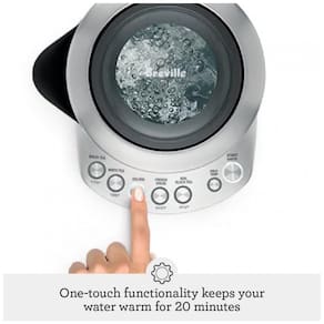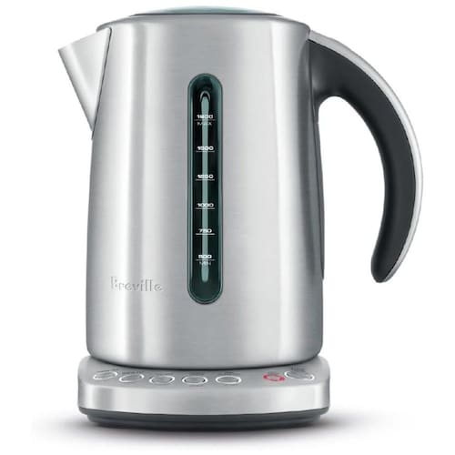 Chaleira de 1500 watts de 1.8 L com 5 temperaturas de preparação predefinidas para chá e muito mais Base direcional de aço inoxidável de 360 graus painel de controle de botão de ação claramente marcado O botão Hold Temp mantém a água na temperatura selecionada por 20 minutos Proteção fervente seca indicadores de nível de água em ambos os lados filtro de escala removível O elemento de aquecimento na base permite o vazamento sem fio. Tensão 110 120 Volts