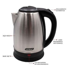 Características Gerais do produto Chaleira elétrica cometros capacidade de 1,8L, feita emetros inox escovado, cometros potência de 1500W e voltagemetros de 220V. Possui desligametrosento autometrosático ao ferver e aquecimetrosento rápido.