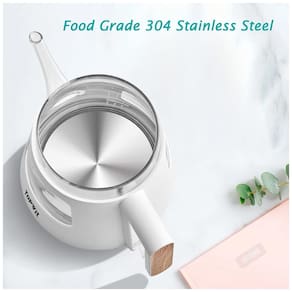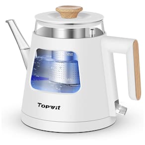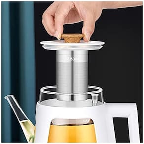 Chaleira elétrica 1L com desligamento automático, corpo em aço inoxidável e vidro borossilicato, design de parede dupla, infusor de chá removível e bico gooseneck.Características