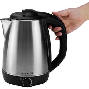Chaleira elétrica com capacidade de 2,2 litros, ideal para aquecer água rapidamente para diversas finalidades como preparo de bebidas quentes, chás, cafés e auxílio em tarefas domésticas. Possui botão de acionamento na alça e desligamento automático.Acessórios