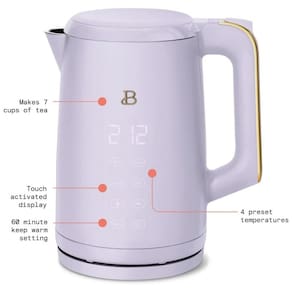 Chaleira elétrica com corpo em aço inoxidável e parede dupla, display touch com 4 programas de temperatura para chás, função manter aquecido, base 360°, desligamento automático e proteção contra fervura a seco.Acessórios