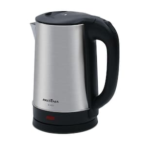 Chaleira elétrica Britânia com capacidade de 1,6 litros, potência de 1150W (127V) ou 1500W (220V), base giratória 360°, desligamento automático, jarra de inox e porta-fio.Características